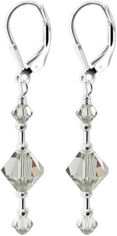 Sterling Silver Lever back Finding Dangle Earrings made with Sparkling Multifaceted Austrian Crystals. Made of 7mm and 3mm Austrian Crystal Bicones with Sterling Silver Accents