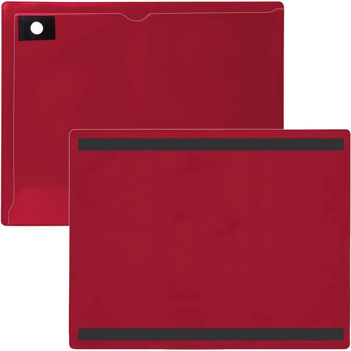 Does your visual management whiteboard or factory staging area often fall to pieces? Are you having trouble keeping paperwork where it needs to be? Win the fight against gravity with StoreSMART's Magnetic Closure Pockets! Each jacket is sealed on two sides, with a strong corner magnet to secure your documents (up to twelve letter-size sheets of paper). A convenient thumb notch makes retrieving or swapping out paperwork easy, while the two 11" magnets mounted on the back of each pocket allow you to stick them on any magnetic surface in order to display critical information. Turn the unused side of a file cabinet into a productive work tracking area, or incorporate the pockets into your Lean/Six Sigma whiteboard displays. When you're done organizing your professional life, take a few folders home—use them to display chore charts, track activities, and protect the family calendar. The best part? You can write on the vinyl pockets with dry erase markers!